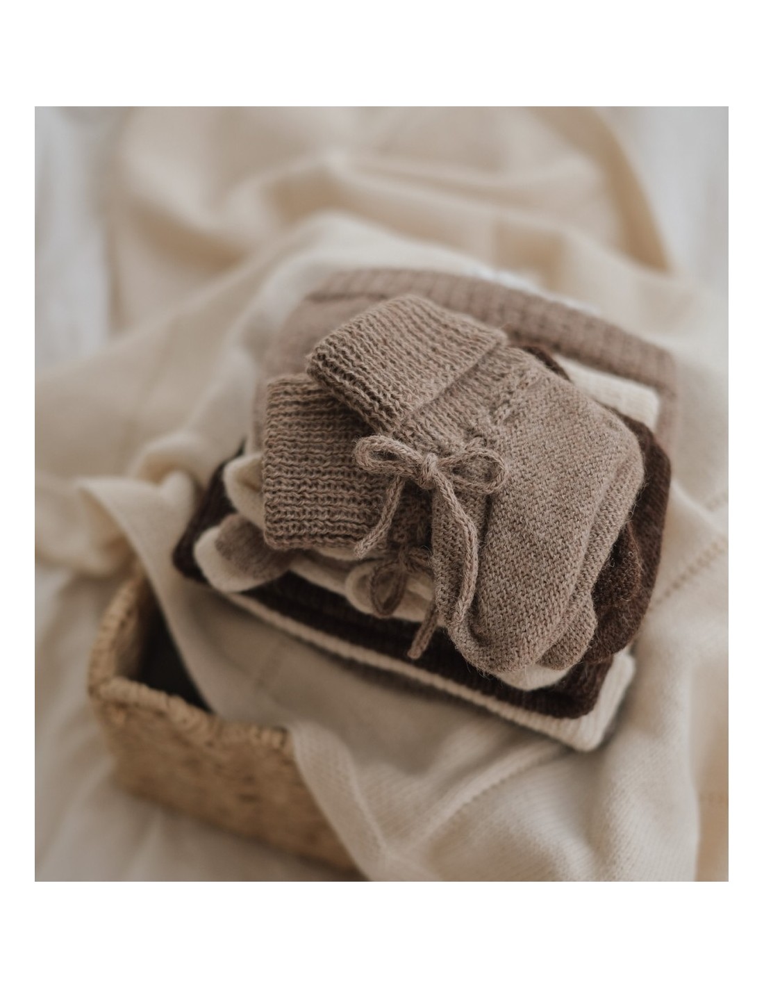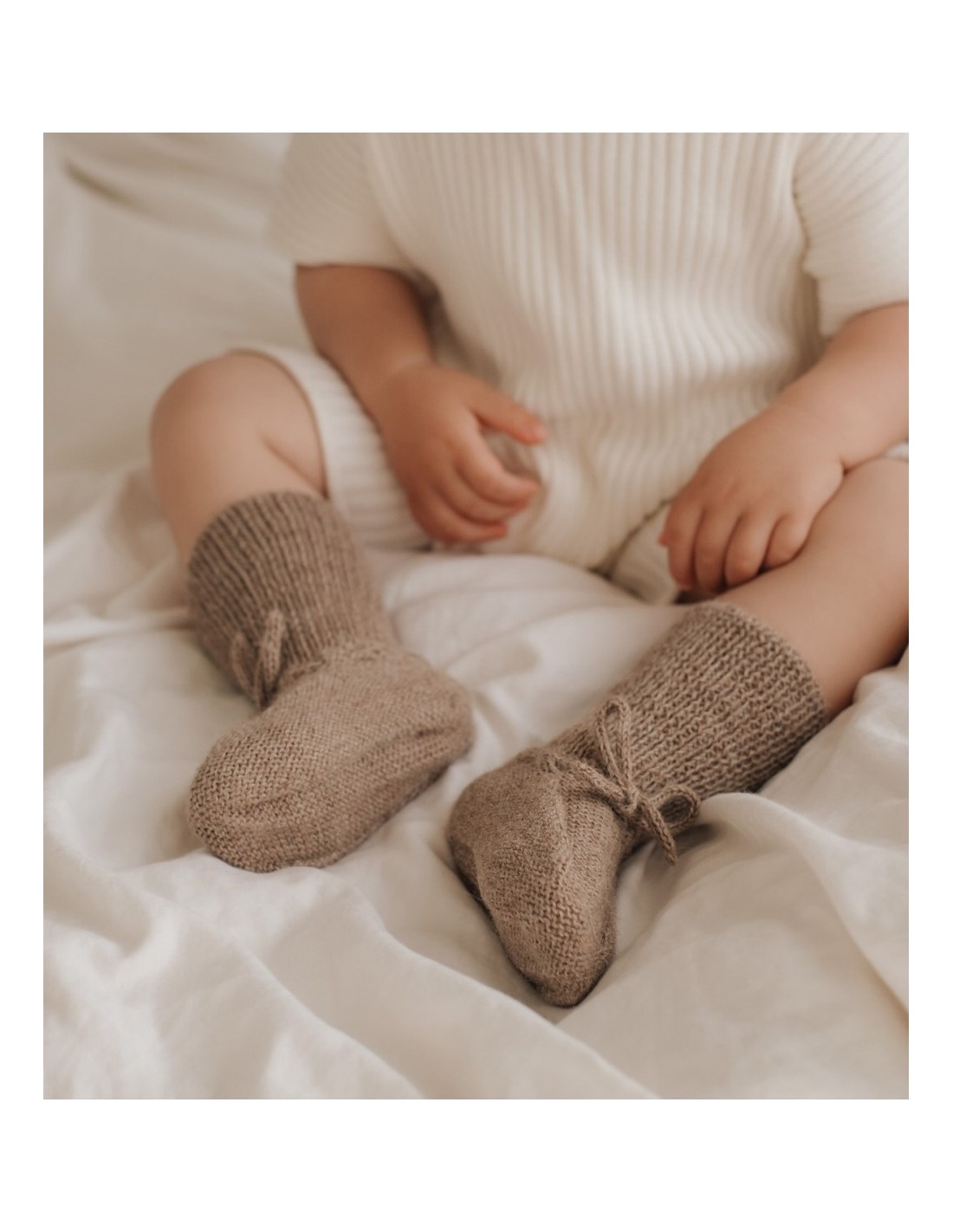 Ils sont fabriqués à la main dans les Andes boliviennes à partir de la plus fine des laines baby alpaga, reconnue pour sa douceur et sa qualité exceptionnelle. Le petit lacet à la cheville permet aux chaussons de bien rester en place et ils peuvent être portés dépliés les jours les plus froids. Naturellement hypoallergénique et antibactérienne, la laine baby alpaga est parfaite pour la peau sensible des bébés et aide l'organisme à se maintenir à une température naturelle, hiver comme été.