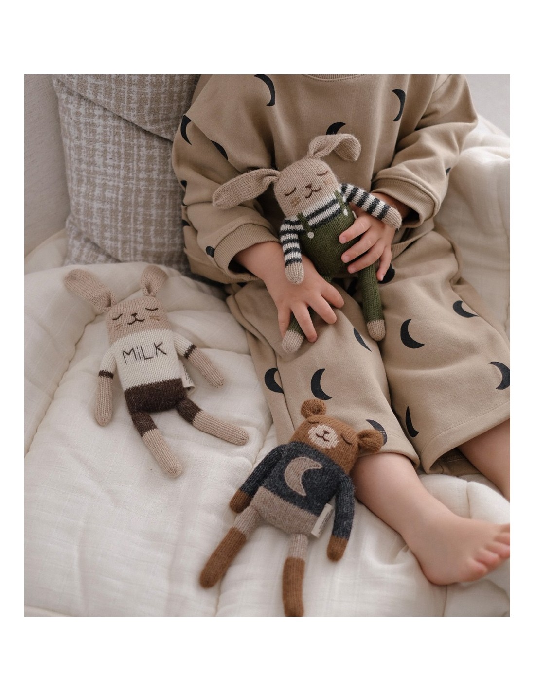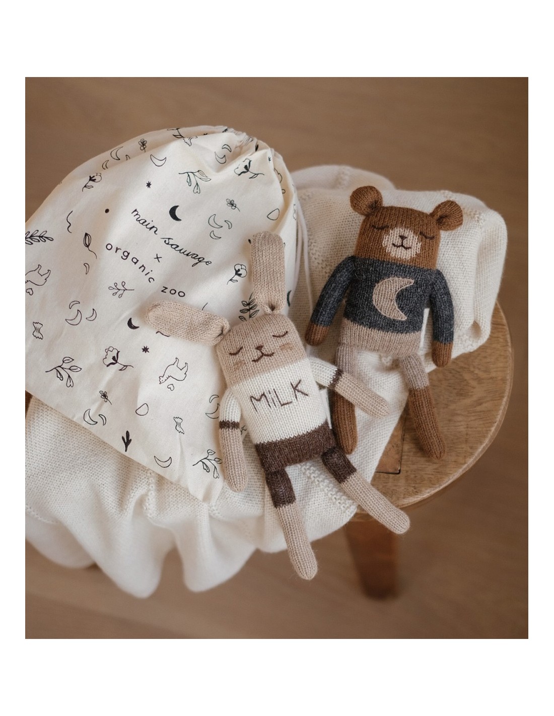 En collaboration avec Organic Zoo, la marque iconique de vêtements pour enfants, nous avons imaginé une capsule unique de quatre doudous exclusifs qui réunissent avec poésie nos deux univers. Chaque commande est accompagnée d’un pochon en coton, spécialement créé pour cette collaboration.