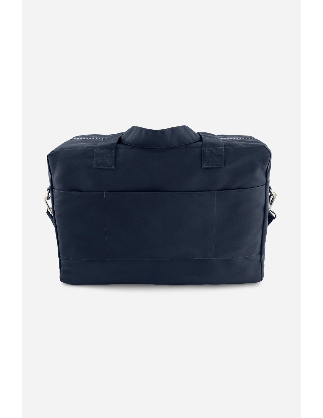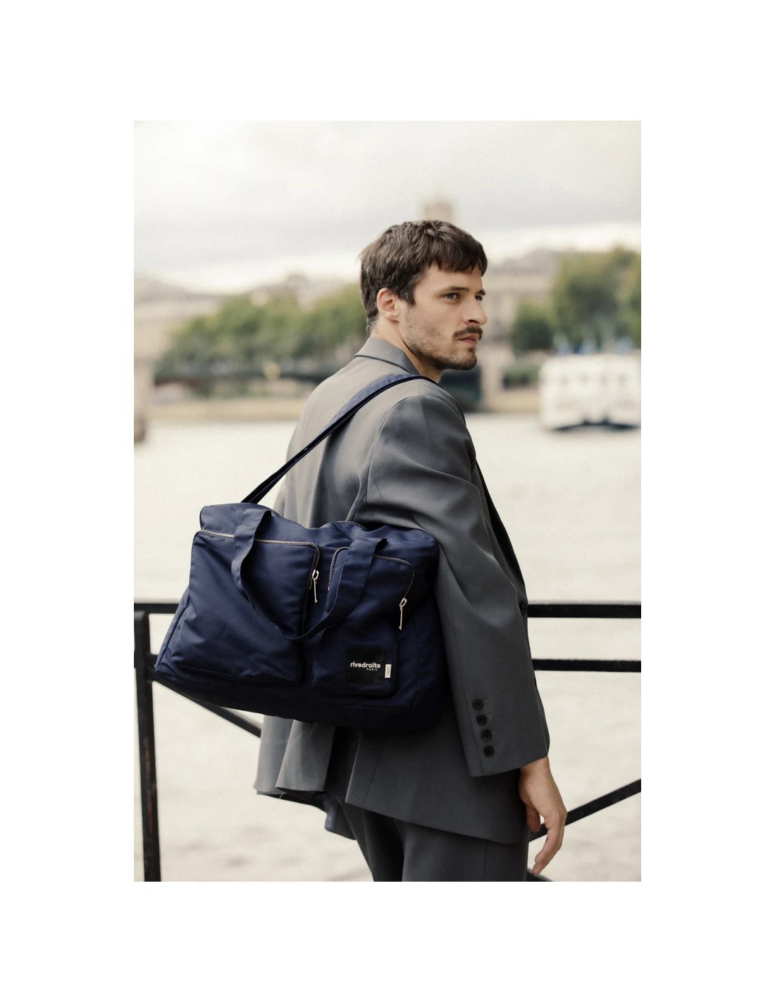 À l’extérieur, deux grandes poches zippées permettent de garder l’essentiel à portée de main. À l’intérieur, une poche compartimentée accueille facilement un ordinateur 16 pouces, un grand espace central qui permet de ranger 2 tenues complètes, une paire de chaussures et une trousse de toilette, un crochet pour accrocher ses clés ainsi qu'une poche plaquée resserrée par un élastique pour la gourde. Sa grande bandoulière croisée en fait un vrai city bag, confortable à porter à l’épaule ou en crossbody.