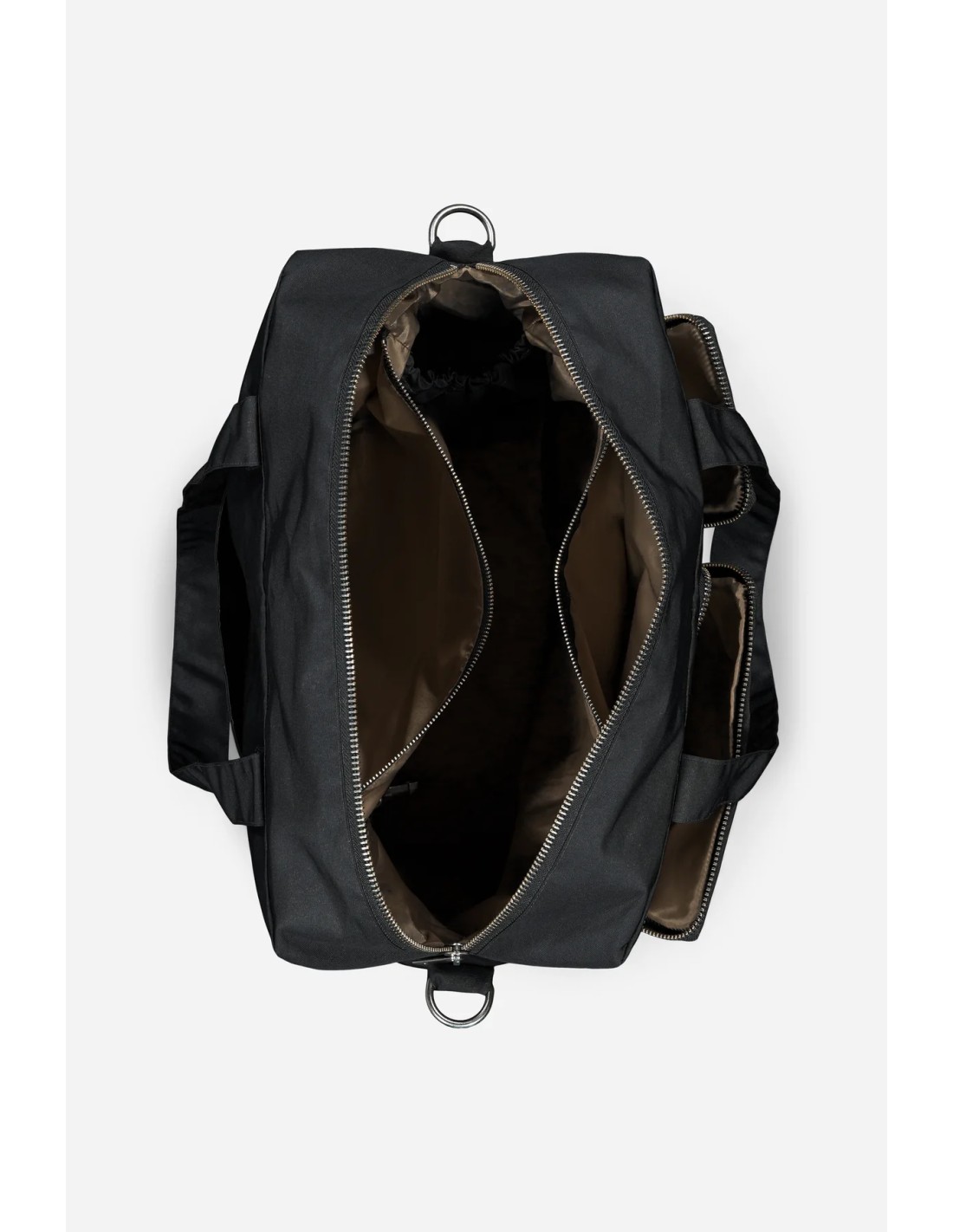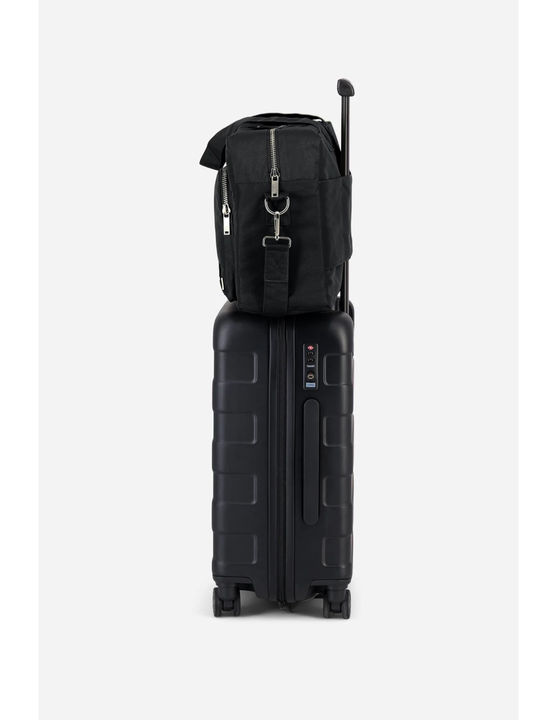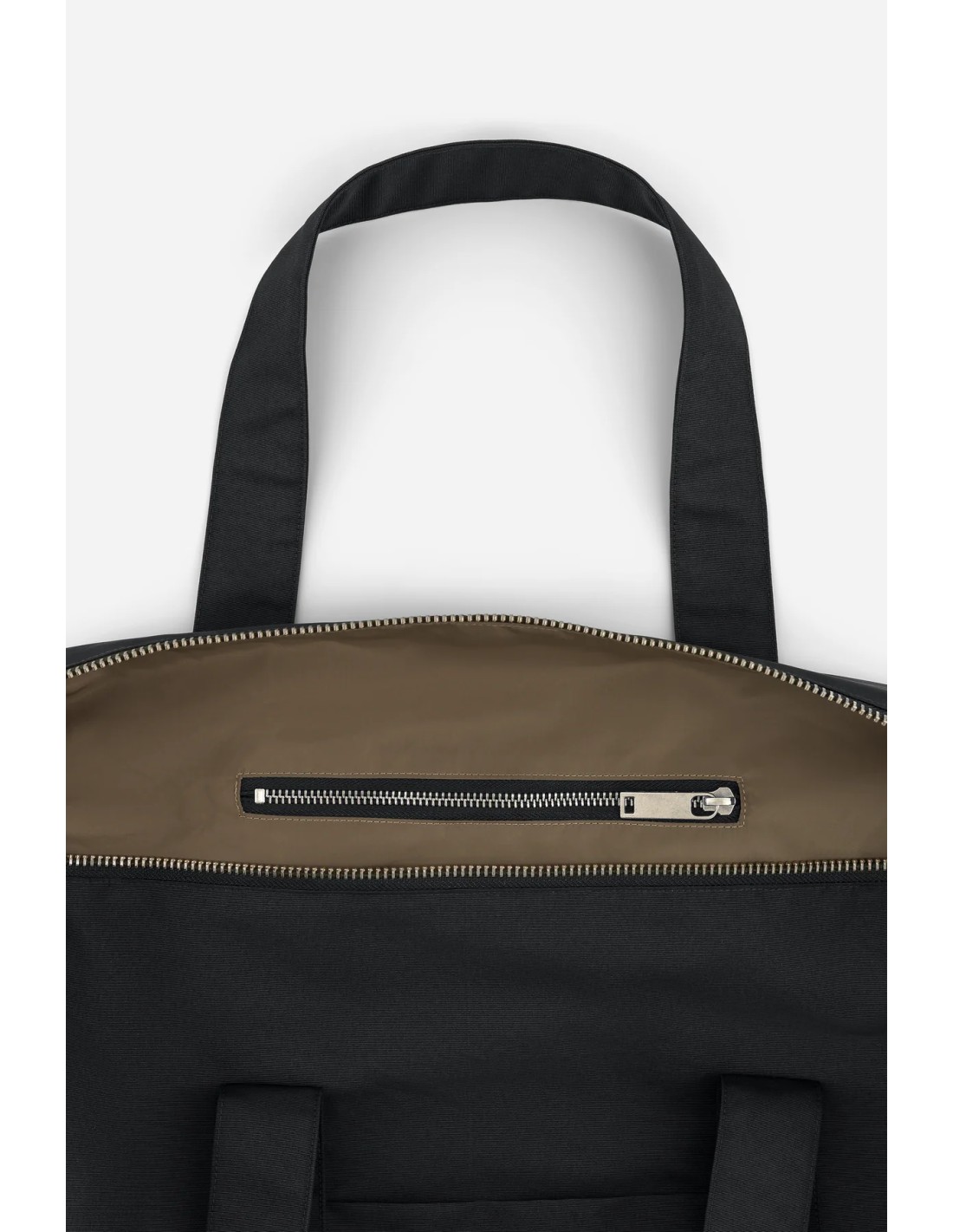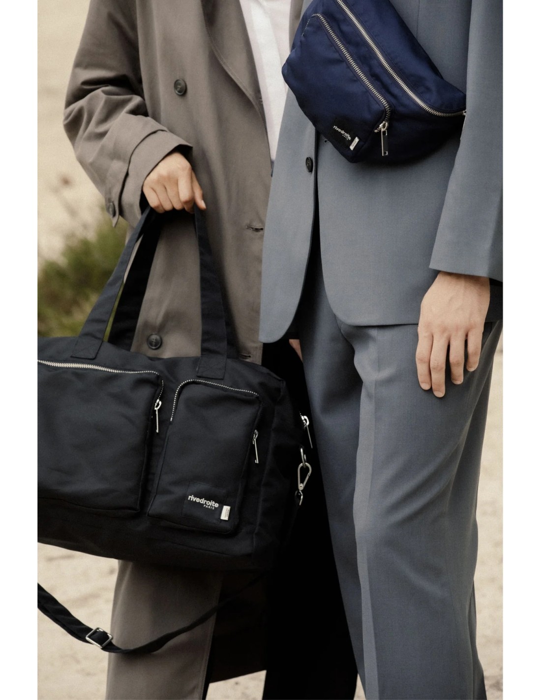 À l’extérieur, deux grandes poches zippées permettent de garder l’essentiel à portée de main. À l’intérieur, une poche compartimentée accueille facilement un ordinateur 16 pouces, un grand espace central qui permet de ranger 2 tenues complètes, une paire de chaussures et une trousse de toilette, un crochet pour accrocher ses clés ainsi qu'une poche plaquée resserrée par un élastique pour la gourde. Sa grande bandoulière croisée en fait un vrai city bag, confortable à porter à l’épaule ou en crossbody.