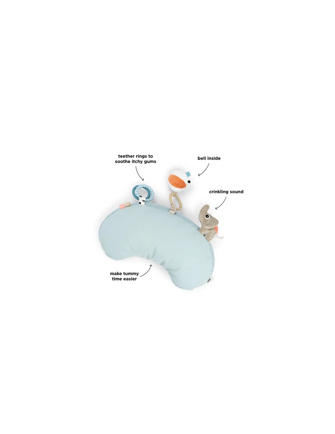 Ce coussin d'éveil est conçu pour soutenir votre bébé tout en contribuant à son développement musculaire. Doté d'éléments sensoriels comme une clochette, un tissu froissé et différentes textures et étiquettes, il stimule l'ouïe et le toucher de votre bébé, rendant ainsi les moments passés sur le ventre à la fois amusants et stimulants.