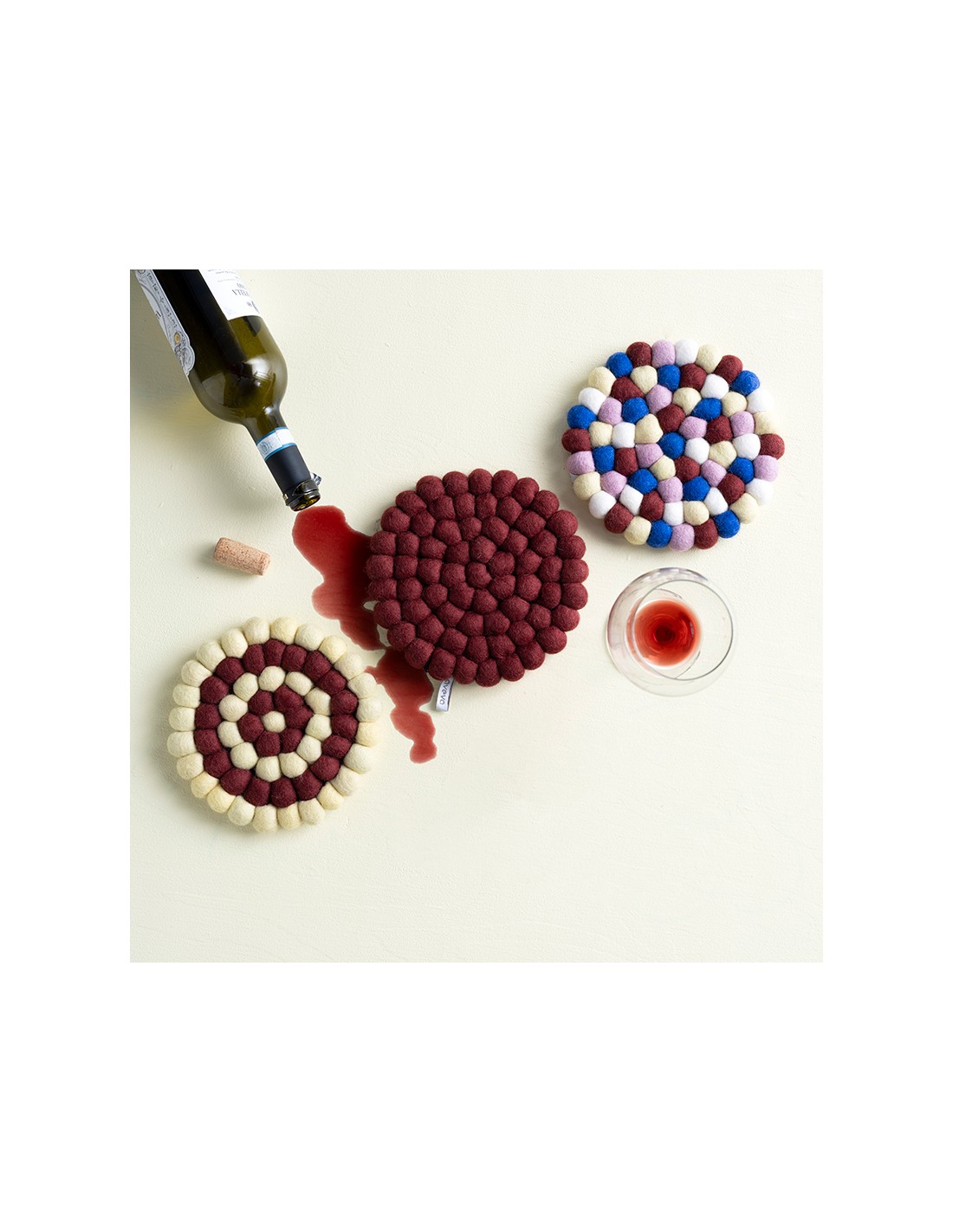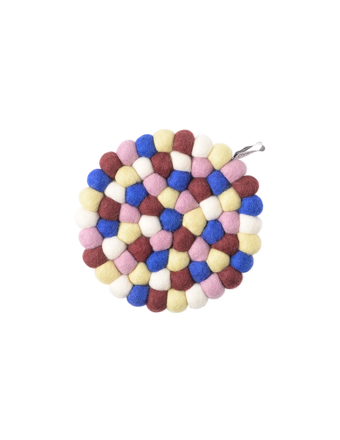 Ces dessous de plat sont fabriqués artisanalement en laine 100 % naturelle, offrant une sensation de douceur et de robustesse. Idéaux pour y poser vos casseroles, la laine est naturellement résistante à la chaleur et aux salissures. Ces dessous de plat protègent, décorent et colorent votre table. Comme tous nos articles en laine, ce dessous de plat est confectionné en laine de haute qualité, avec des colorants sans azoïques, et est naturellement résistant à la chaleur et aux taches. Chaque dessous de plat est muni d'une boucle pour être suspendu et ainsi décorer aussi bien un mur que la table.