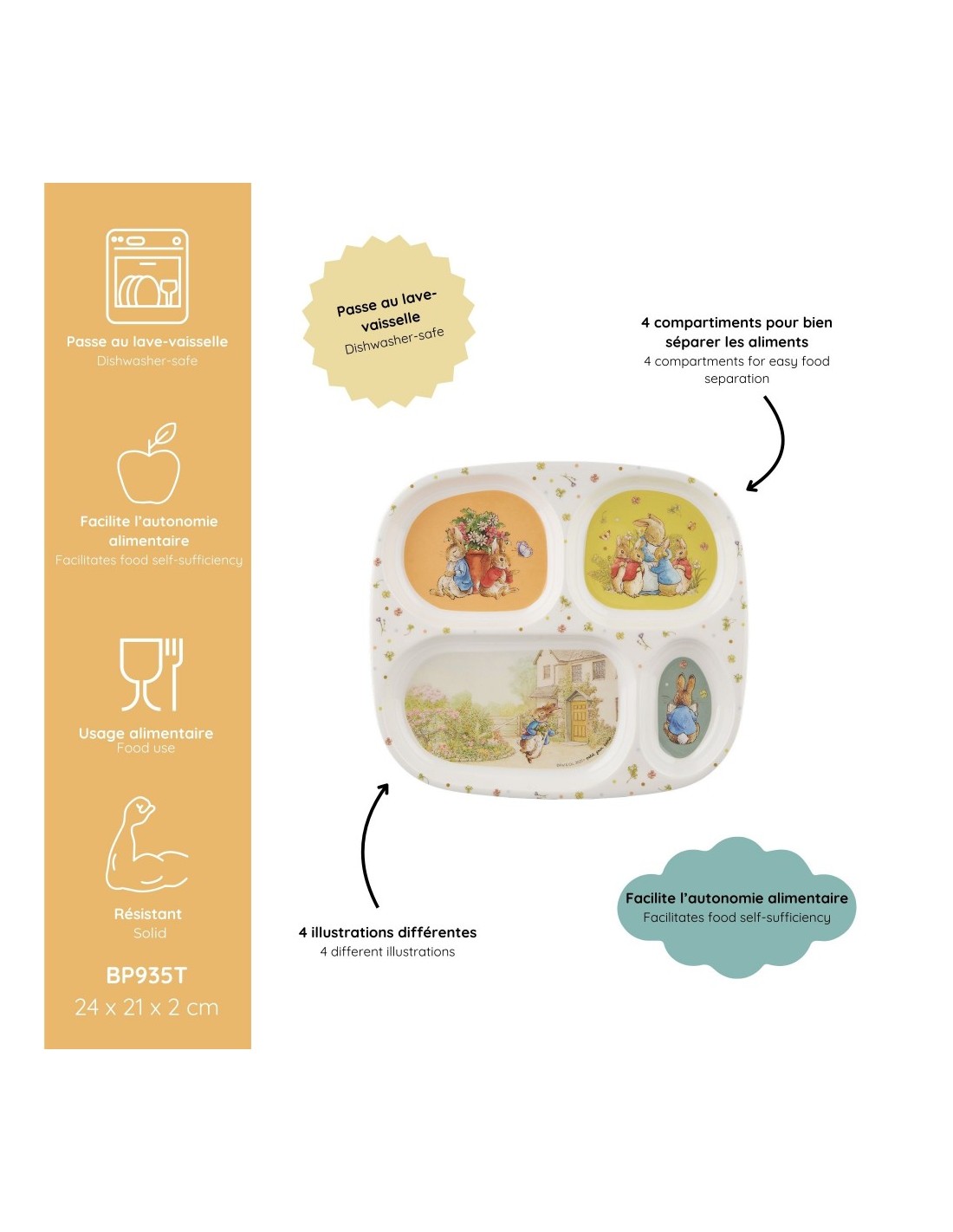 Plateau à 4 compartiments Pierre Lapin