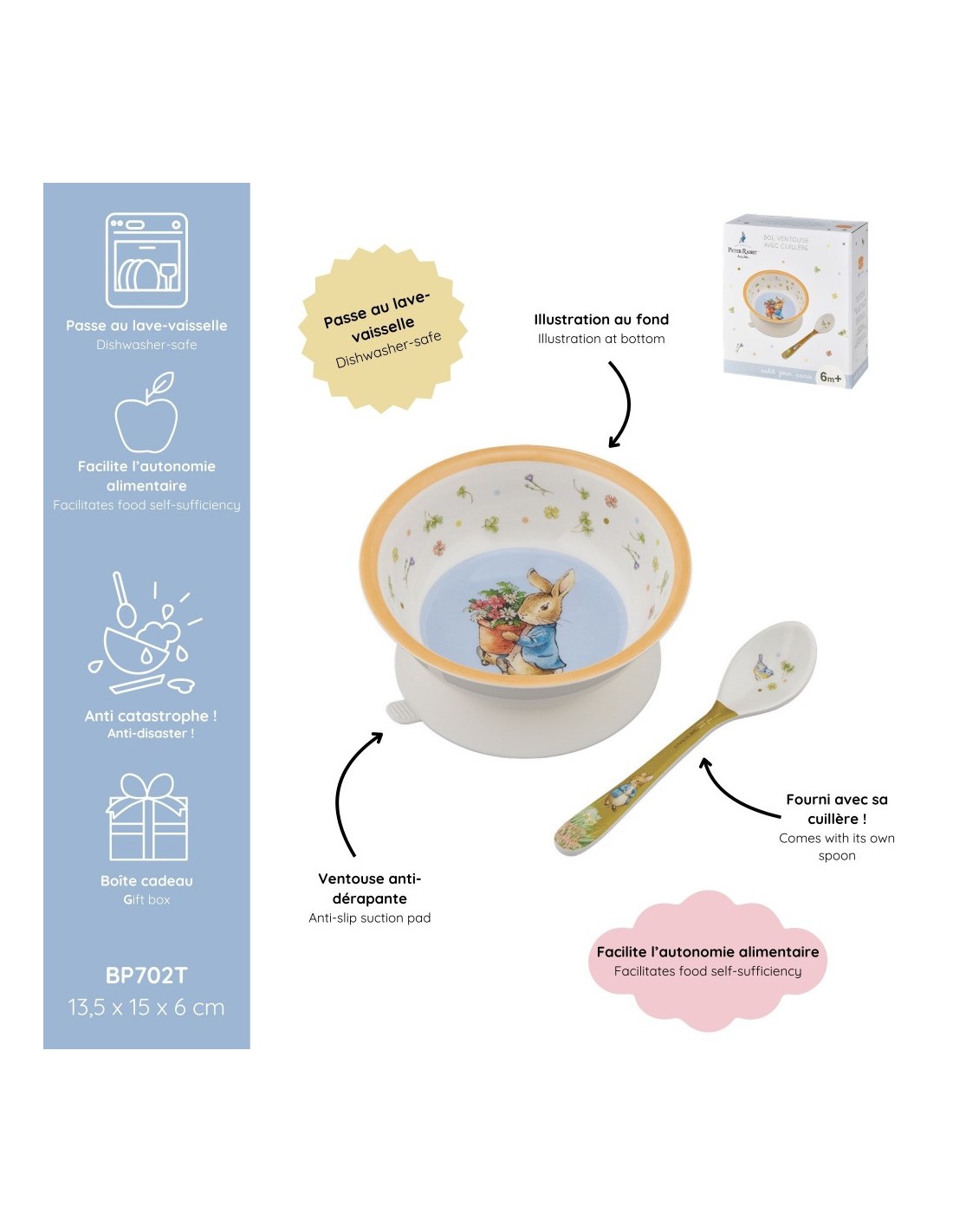 - Cuillère et bol lavables au lave-vaisselle en retirant la ventouse.