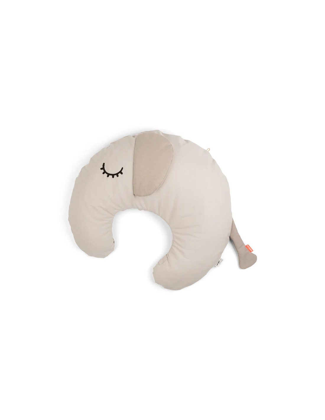 Le coussin d'allaitement en coton super doux est rempli de microbilles, ce qui le rend ferme et malléable. Le coussin éléphant est doté d'une boucle élastique sur le côté qui peut être utilisée pour attacher les jouets préférés de votre bébé à l'aide d'un lien de jouet - idéal pour l'entraînement à l'heure du ventre.