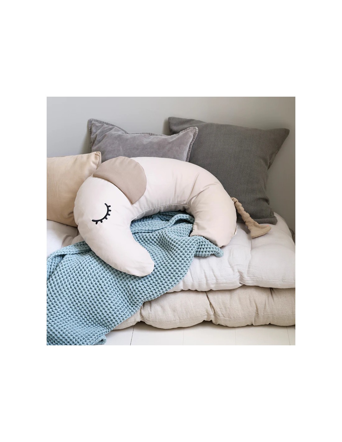 L'adorable oreiller Peluche - Elphee - Sable est doté d'une oreille douce, douillette pour les câlins de votre bébé. La housse est dotée d'une fermeture à glissière pratique et peut être facilement retirée et lavée à 30 °C en machine.
