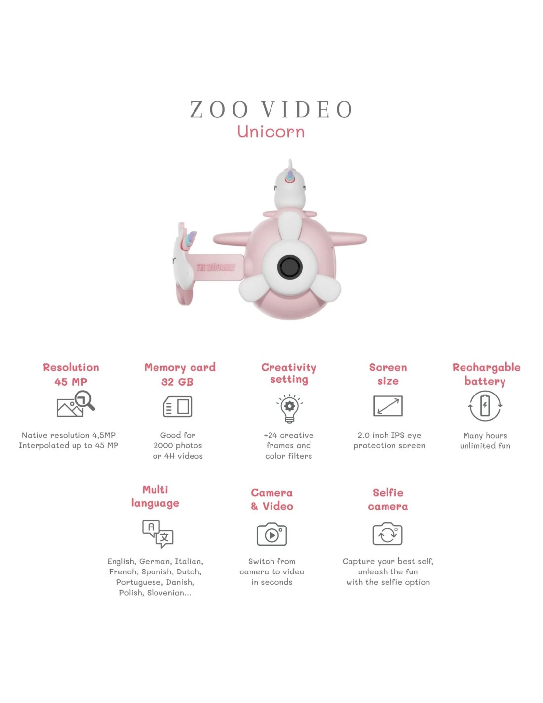 Capturez la magie avec la caméra Zoo Video Licorne - où chaque moment devient un chef-d'œuvre !